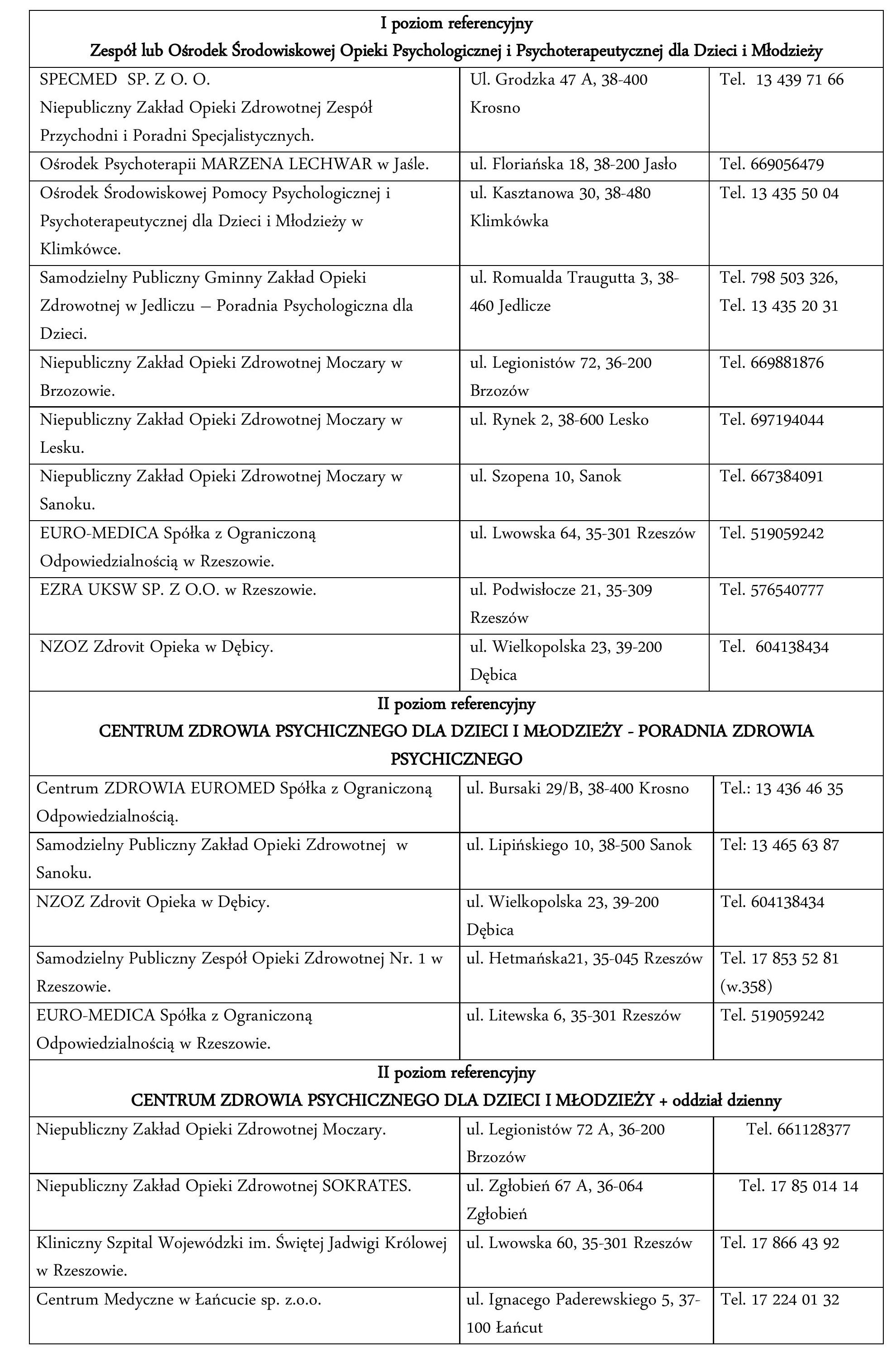 Strona główna » Zdrowie i pomoc społeczna » Placówki wsparcia psychologicznego, psychoteraputycznego i psychiatrycznego dla dzieci i mlodzieży